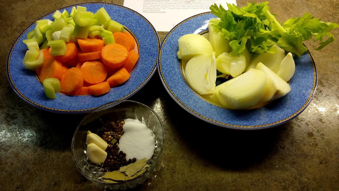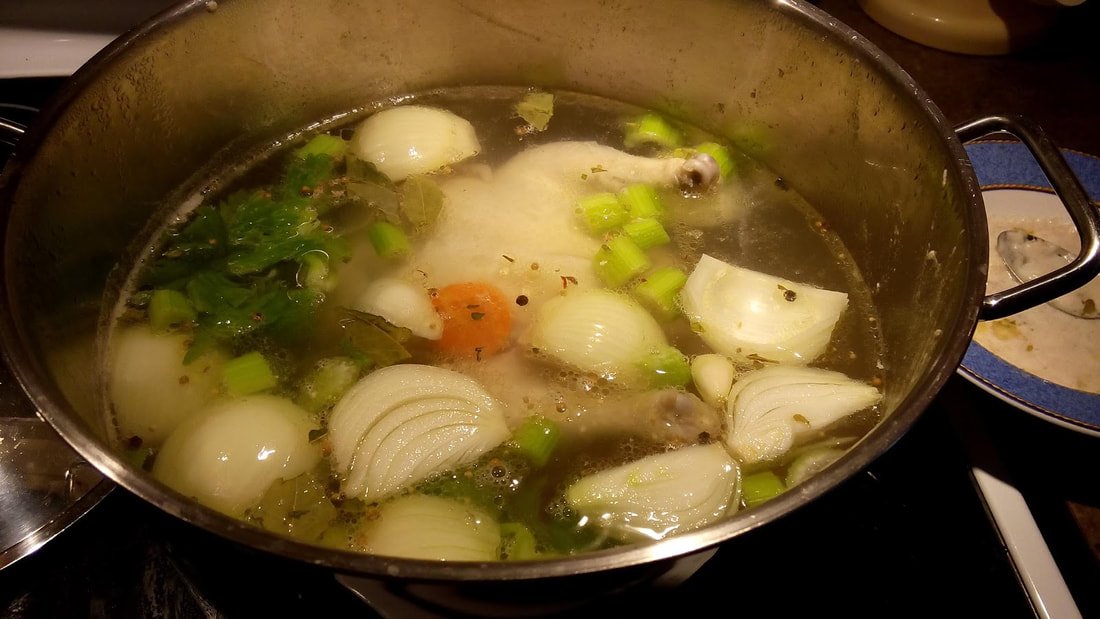 Place cleaned chicken in large soup pot and add enough cold water to cover.