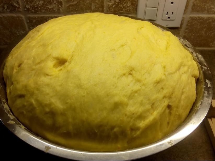 There is a tendency to under bake Paska. It may look brown enough, but it could still be raw inside. Internal temperature should be 190 - 195 degrees (instant read thermometer). Remove from pan immediately.