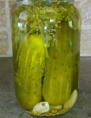 In the bottom of each jar place: pickling spices, garlic and dill. Add cucumbers and top with more dill. Amounts can vary with the size of the jar.