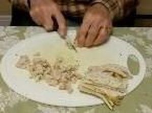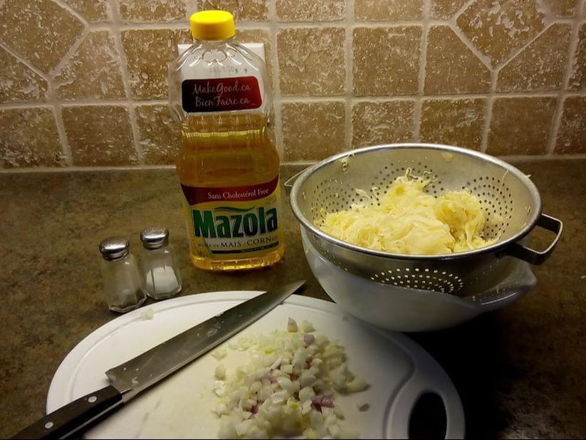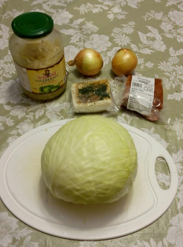 Sauerkraut: drain and squeeze out excess water. Dice onions. Remove rind from smoked bacon and salt pork, then chop finely. Set aside.