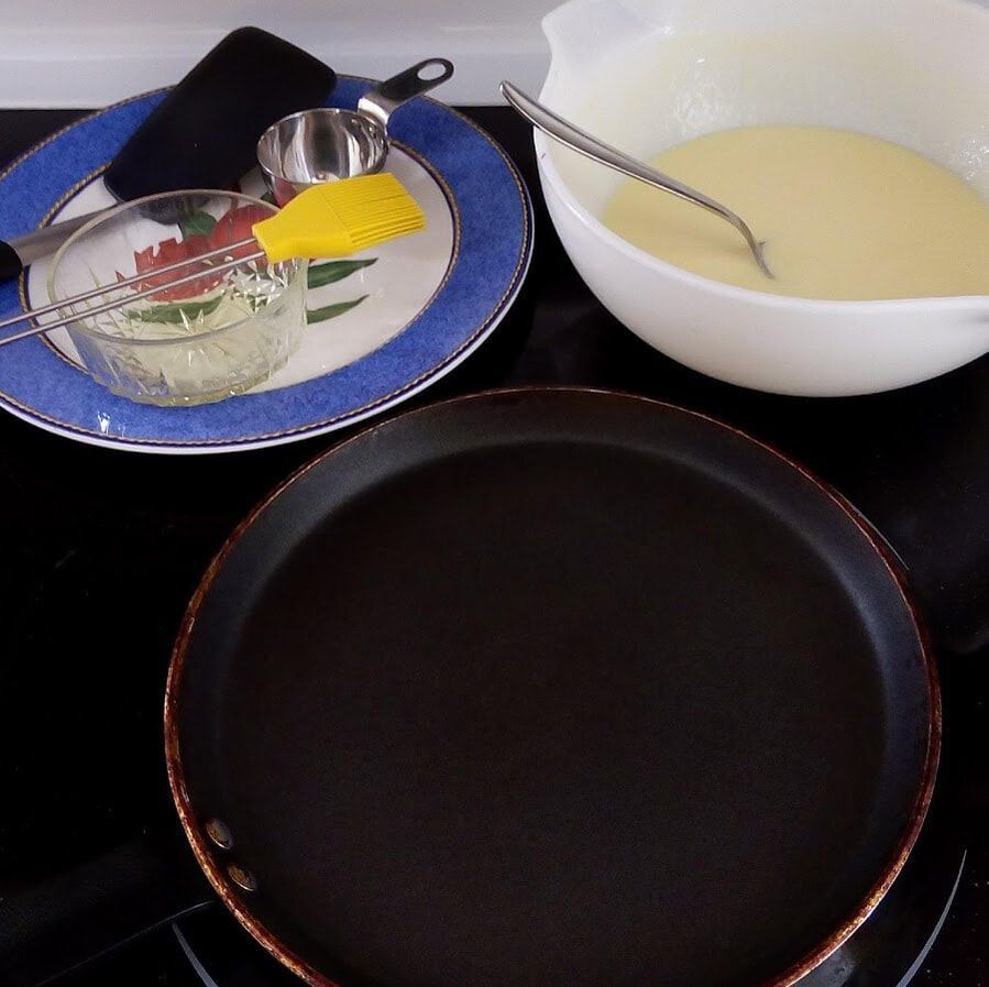 Brush pan lightly with oil before making each crepe. Keep a small dish of oil handy for this purpose.
