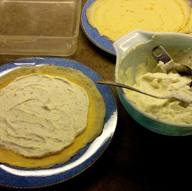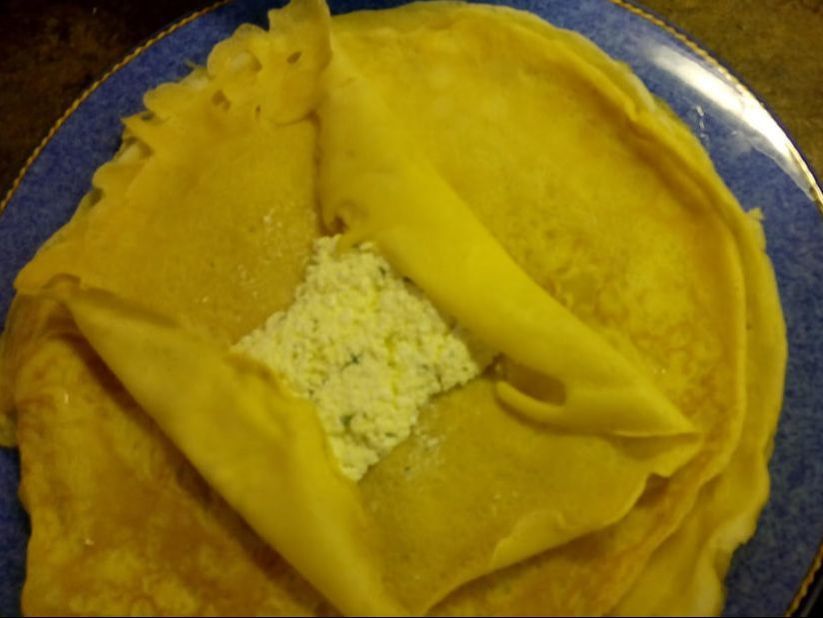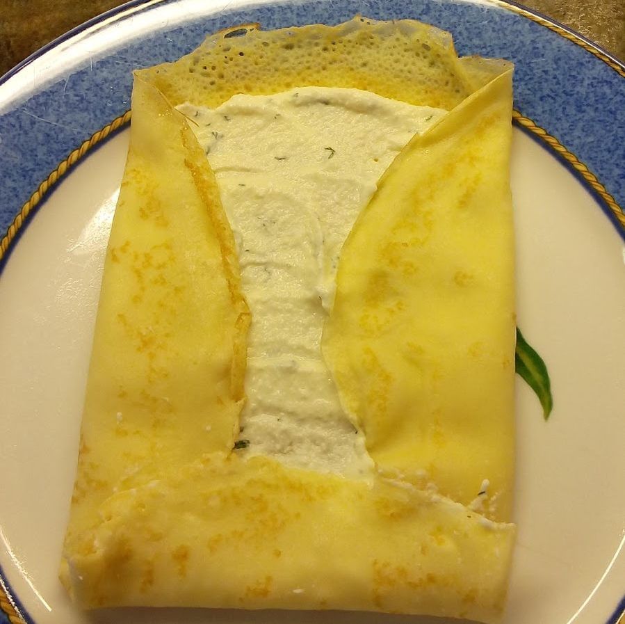 Mix together. Place a thin strip of filling across the crepe.