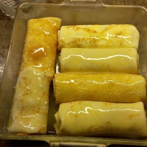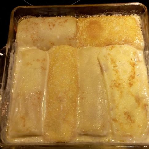 Bake in 350 degrees oven for 10 minutes. Remove foil and pour warmed, half and half cream over Nalysnyky. Recover and return to oven and bake until liquid bubbles, about 20 minutes.